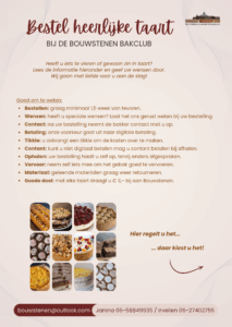 Ben je benieuwd naar het aanbod? Op de flyer vind je een overzicht van al het lekkers en praktische informatie over bestellen, betalen en ophalen.