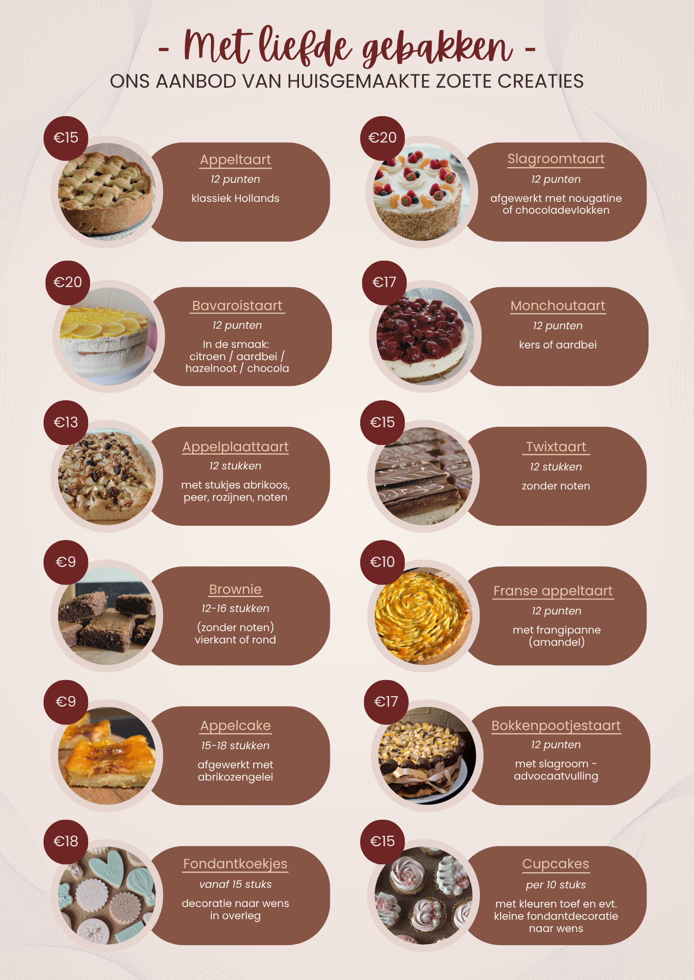 Ben je benieuwd naar het aanbod? Op de flyer vind je een overzicht van al het lekkers en praktische informatie over bestellen, betalen en ophalen.
